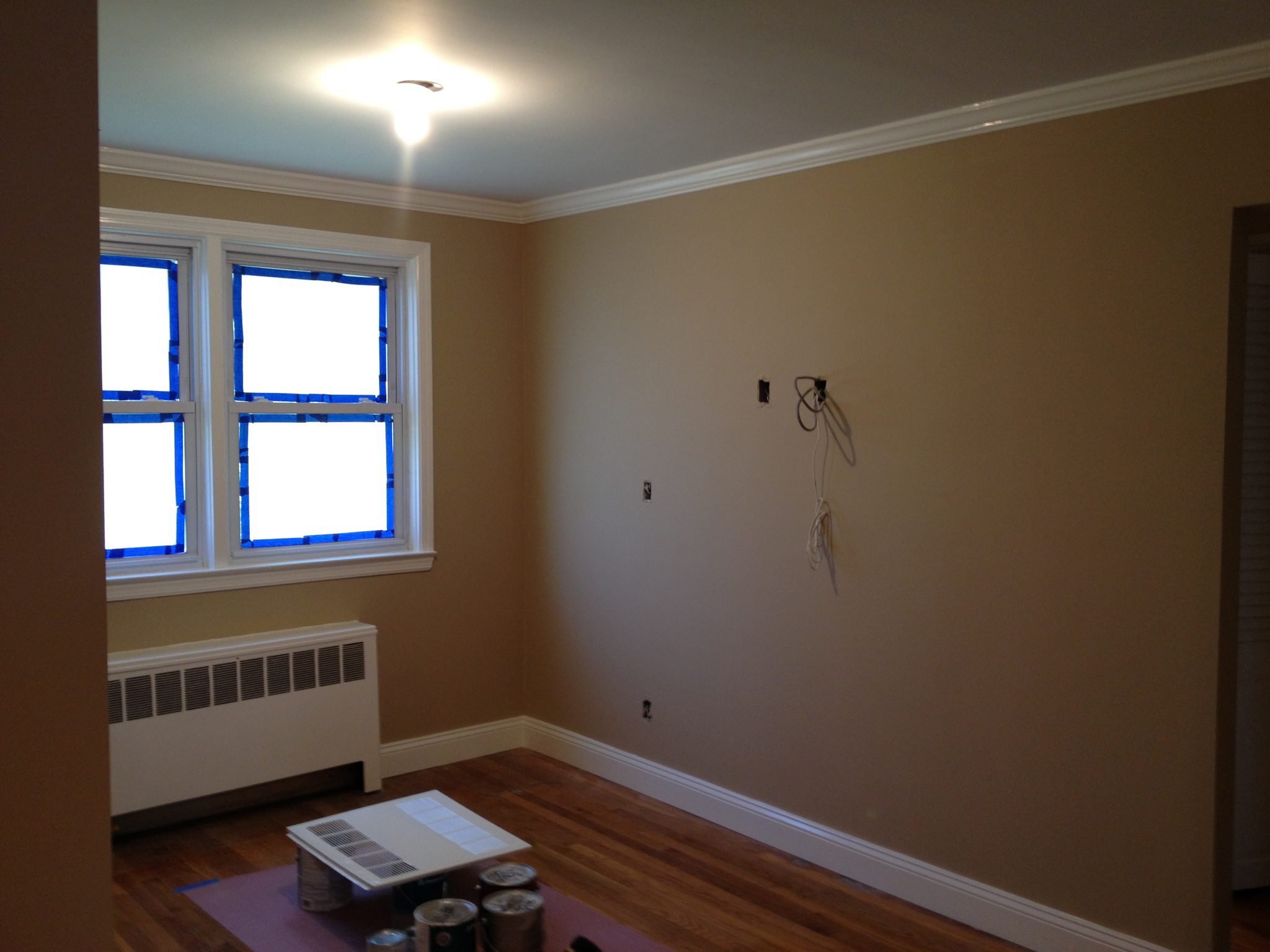 We recently completed a full apartment painting project including some carpentry. We painted the Kitchen, Living Room, Dining Room, Bathroom, Hallway and Bedroom in an apartment in Rye Brook. The job took about 1 week for carpentry and 2 weeks of prep and painting. Here is what we did; take a look at the amazing before and after shots.Project Process